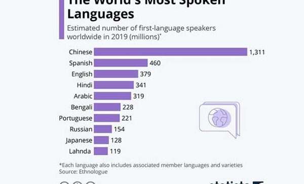 এথনোলগের সূত্রে স্ট্যাটিস্টা আরও জানায়, বিশ্বে ফার্স্ট ল্যাঙ্গুয়েজ হিসেবে সর্বাধিক ব্যবহৃত হয় চীনা ভাষা বা মান্দারিন। প্রায় এক হাজার ৩১১ মিলিয়ন মানুষ এই ভাষায় কথা বলেন।