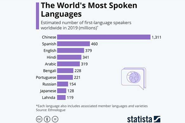 এথনোলগের সূত্রে স্ট্যাটিস্টা আরও জানায়, বিশ্বে ফার্স্ট ল্যাঙ্গুয়েজ হিসেবে সর্বাধিক ব্যবহৃত হয় চীনা ভাষা বা মান্দারিন। প্রায় এক হাজার ৩১১ মিলিয়ন মানুষ এই ভাষায় কথা বলেন।