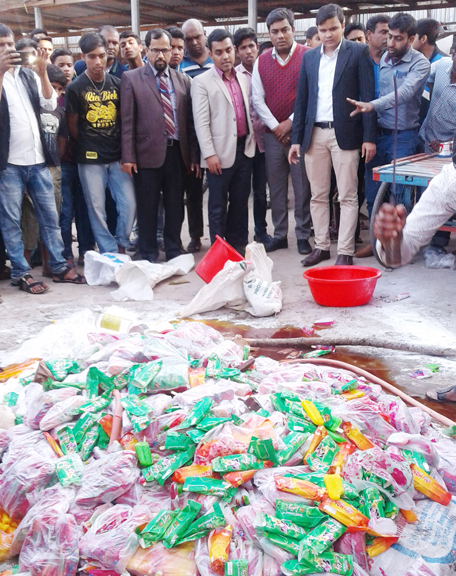 আইসক্রীম তৈরিতে ব্যবহৃত রং সহ বিভিন্ন মালামাল জব্দ করে ধ্বংস করা হয়।