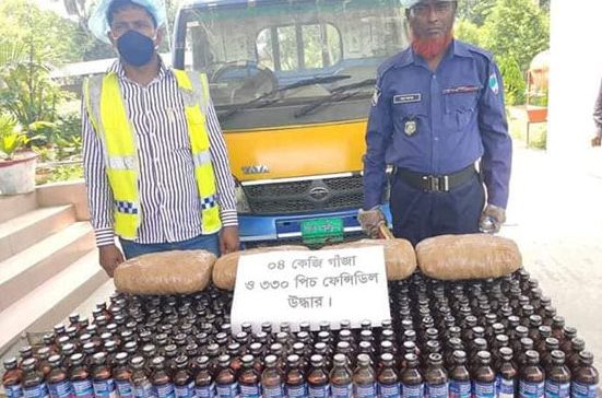 কুষ্টিয়া প্রতিনিধি : কুষ্টিয়ায় পুলিশ ও র্যাবের পৃথক অভিযানে ৩৪৮ বোতল ফেনসিডিল ও ৪ কেজি ৬শ গ্রাম গাঁজা উদ্ধার হয়েছে। এ ঘটনায় আটক হয়েছে ২ জন। বুধবার সকাল সাড়ে ৯টার দিকে কুষ্টিয়ার মিরপুরের মালিহাদ ক্যাম্পের এস আই আবুল কালাম আজাদ ঝুটিয়াডাঙ্গা চেকপোস্টে একটি পিকআপ আটকে তল্লাশি করে ৩৩০ বোতল ফেনসিডিল ও ৪ কেজি গাঁজা উদ্ধার করে। এ সময় পিকআপের চালককে আটক করা হয়। পিকআপটি রাজবাড়ীতে যাচ্ছিল। মাদকসহ পিকআপ আটকের বিষয়ে মিরপুর থানার ওসি আবুল কালাম জানান, পিকআপের চালক, মালিক ও মাদক ব্যবসায়ী ৩ জনের বিরুদ্ধে মামলা দায়েরের প্রস্তুতি চলছে।