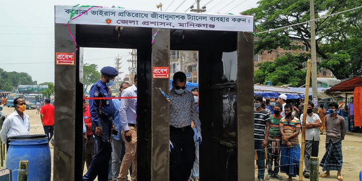 মানিকগঞ্জ প্রতিনিধি : জেলা প্রশাসনের উদ্যোগে মানিকগঞ্জ বাস-টার্মিনালে স্থাপন করা হয়েছে স্থায়ী জীবাণুনাশক টানেল। ঢাকা-আরিচা মহাসড়ক হয়ে যাতায়াতকারী যাত্রীসাধারণকে করোনার সংক্রমণ থেকে রক্ষা করতেই সেখানে এই টানেল স্থাপন করা হয়েছে। বুধবার দুপুরে এই টানেল পার হওয়ার মধ্য দিয়ে উদ্বোধন করেন জেলা প্রশাসক এস এম ফেরদৌস।