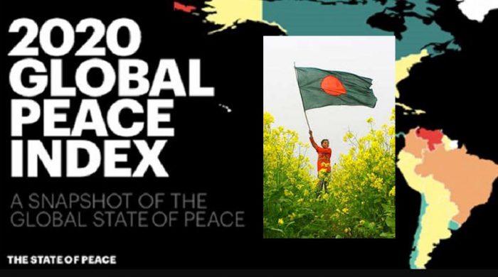 অনলাইন ডেস্ক : বিশ্ব শান্তি সূচকে চার ধাপ উন্নতি হয়েছে বাংলাদেশের। ২.১২১ জিপিআই স্কোর নিয়ে ১৬৩টি দেশের মধ্যে বাংলাদেশের অবস্থান ৯৭তম। ২০১৯ সালে এই সূচকে বাংলাদেশ ছিল ১০১তম।