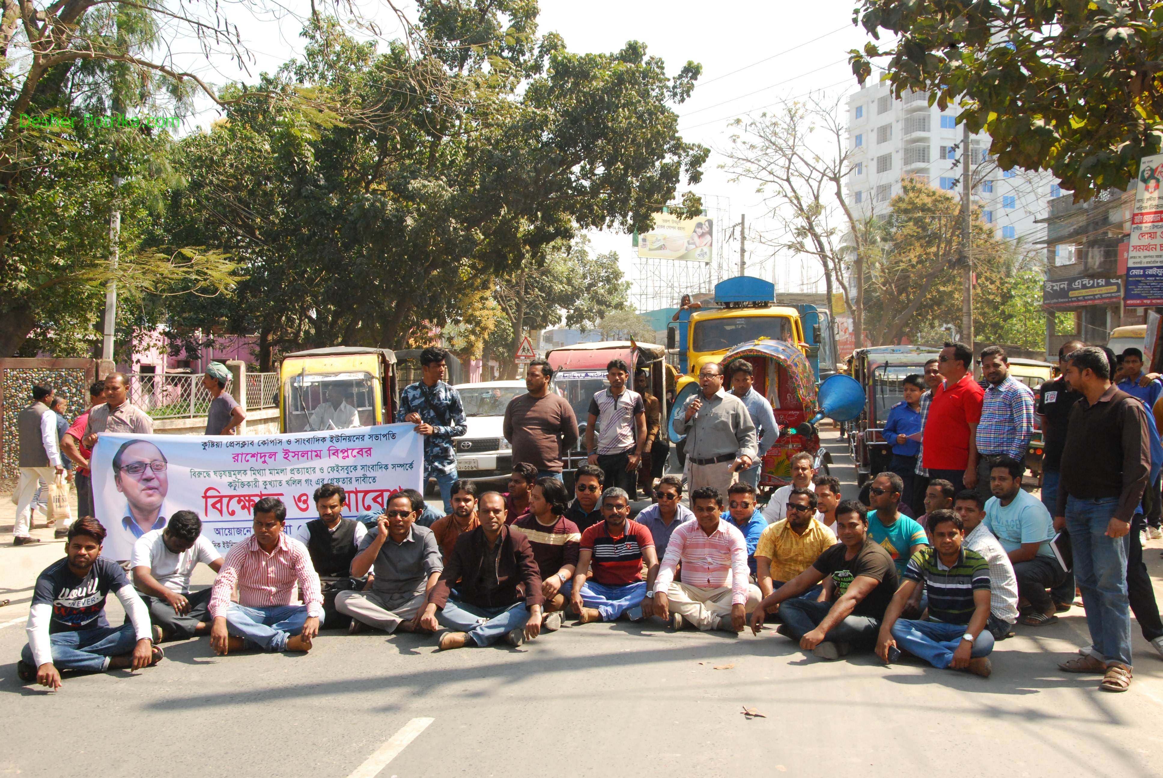 কুষ্টিয়ায় মহাসড়ক অবরোধ করে সাংবাদিকদের বিক্ষোভ সমাবেশ : স্মারকলিপি প্রদান