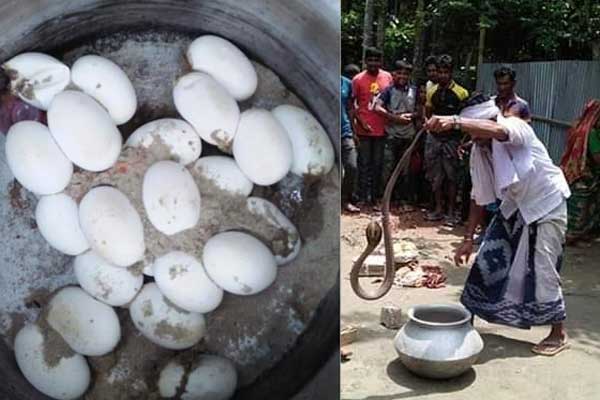 জসিম উদ্দিন মাস্টার স্থানীয় ইউনিয়ন যুবলীগের সভাপতি। তিনি জানান, শুক্রবার রাতে একটি সাপ বাড়ির উঠানে দেখে সাপুড়ে আল আমিনকে খবর দেওয়া হয়। এরপর শনিবার সকালে সাপুড়ে আল আমিন রান্নাঘরের পাকা মেঝে খুঁড়ে দুইটি গোখরা প্রজাতির সাপসহ ২৬টি ডিম উদ্ধার করে।
