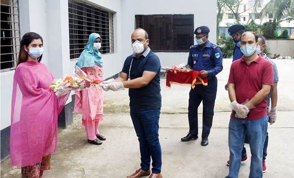 কুষ্টিয়া প্রতিনিধি : কোভিড-১৯ করোনা ভাইরাসের বিরুদ্ধে সম্মুখ সারির যোদ্ধা বাংলাদেশ পুলিশের গর্বিত সদস্য কুষ্টিয়া জেলা পুলিশে কর্মরত বিভিন্ন সময়ে সরকারি দায়িত্ব পালনকালে করোনায় আক্রান্ত হয়ে কুষ্টিয়া পুলিশ লাইন্স হাসপাতালে ভর্তি হওয়ার পর হতে পুলিশ সুপার এস এম তানভীর আরাফাত পিপিএম (বার) তাদেরকে পুষ্টিকর খাদ্য সামগ্রী সরবরাহ’সহ সার্বক্ষনিক খোঁজ-খবর নেন । ইতোমধ্যে ৭ পুলিশ সদস্যের পুনরায় নমুনা পরীক্ষা করালে ফলাফল নেগেটিভ আসায় চিকিৎসকরা তাদের করোনামুক্ত ও সুস্থ ঘোষণা করে। গতকাল শনিবার ওই ৭ পুলিশ সদস্যদের কুষ্টিয়া পুলিশ লাইন্স হাসপাতাল ত্যাগের ছাড়পত্র দেন। এ সময়ে করোনা জয়ীদের সাথে সৌজন্য স্বাক্ষাৎ করেন এবং তাদেরকে ফুলেল শুভেচ্ছা জানান পুলিশ সুপার এস এম তানভীর আরাফাত পিপিএম (বার)। এসময় উপস্থিত ছিলেন অতিরিক্ত পুলিশ সুপার (প্রশাসন ও অপরাধ) মোস্তাফিজুর রহমান, অতিরিক্ত পুলিশ সুপার (সদর) আজাদ রহমানসহ অন্যান্য অফিসার/ ফোর্সগণ। এ পর্যন্ত ২জন নারী সদস্যসহ মোট ৮ পুলিশ সদস্য করোনা ভাইরাস (কোভিড-১৯) জয় করে পুনরায় কর্মে যোগদান করেছেন। পুলিশ সুপার তানভীর আরাফাত বলেন, যারা কোভিড-১৯ পরিস্থিতি নিয়ন্ত্রণে সকলকে সচেতনতা অবলম্বন করতে হবে। যারা সুস্থ্য হয়েছে তাদেরকেও সরকারি স্বাস্থ্য বিধি মেনে চলতে হবে।