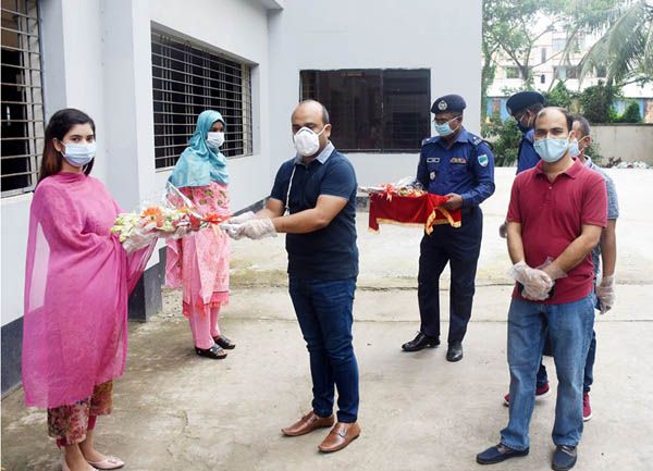 কুষ্টিয়া প্রতিনিধি : কোভিড-১৯ করোনা ভাইরাসের বিরুদ্ধে সম্মুখ সারির যোদ্ধা বাংলাদেশ পুলিশের গর্বিত সদস্য কুষ্টিয়া জেলা পুলিশে কর্মরত বিভিন্ন সময়ে সরকারি দায়িত্ব পালনকালে করোনায় আক্রান্ত হয়ে কুষ্টিয়া পুলিশ লাইন্স হাসপাতালে ভর্তি হওয়ার পর হতে পুলিশ সুপার এস এম তানভীর আরাফাত পিপিএম (বার) তাদেরকে পুষ্টিকর খাদ্য সামগ্রী সরবরাহ’সহ সার্বক্ষনিক খোঁজ-খবর নেন । ইতোমধ্যে ৭ পুলিশ সদস্যের পুনরায় নমুনা পরীক্ষা করালে ফলাফল নেগেটিভ আসায় চিকিৎসকরা তাদের করোনামুক্ত ও সুস্থ ঘোষণা করে। গতকাল শনিবার ওই ৭ পুলিশ সদস্যদের কুষ্টিয়া পুলিশ লাইন্স হাসপাতাল ত্যাগের ছাড়পত্র দেন। এ সময়ে করোনা জয়ীদের সাথে সৌজন্য স্বাক্ষাৎ করেন এবং তাদেরকে ফুলেল শুভেচ্ছা জানান পুলিশ সুপার এস এম তানভীর আরাফাত পিপিএম (বার)। এসময় উপস্থিত ছিলেন অতিরিক্ত পুলিশ সুপার (প্রশাসন ও অপরাধ) মোস্তাফিজুর রহমান, অতিরিক্ত পুলিশ সুপার (সদর) আজাদ রহমানসহ অন্যান্য অফিসার/ ফোর্সগণ। এ পর্যন্ত ২জন নারী সদস্যসহ মোট ৮ পুলিশ সদস্য করোনা ভাইরাস (কোভিড-১৯) জয় করে পুনরায় কর্মে যোগদান করেছেন। পুলিশ সুপার তানভীর আরাফাত বলেন, যারা কোভিড-১৯ পরিস্থিতি নিয়ন্ত্রণে সকলকে সচেতনতা অবলম্বন করতে হবে। যারা সুস্থ্য হয়েছে তাদেরকেও সরকারি স্বাস্থ্য বিধি মেনে চলতে হবে।