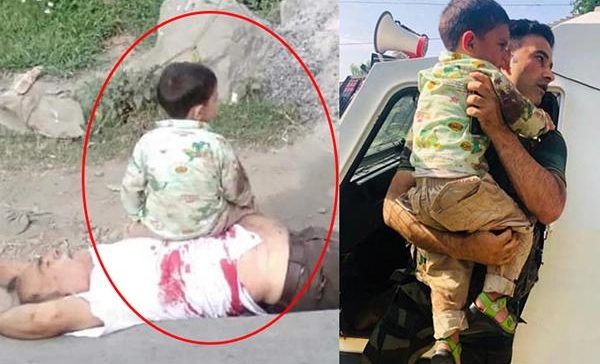 অনলাইন ডেস্ক : জঙ্গিদের গুলিতে ঝাঁজরা হয়ে গেছে দেহ। রক্তে ভেসে যাচ্ছে পরনের সাদা শার্ট। আর সেই দাদার মৃতদেহের ওপর বসেই অঝোরে কেঁদে চলেছে তিন বছরের দুধের শিশু। অজানা ভয় গ্রাস করেছে স্বজনহারা বাচ্চাটিকে। মায়ের কাছে ফিরতে চায় সে। যেভাবেই হোক। যত তাড়াতাড়ি সম্ভব। বাচ্চার সেই হৃদয়বিদারক ছবি মুহূর্তে ভাইরাল হয়ে যায় সোশ্যাল মিডিয়ায়।