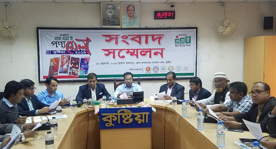 নিজস্ব প্রতিবেদক: কুষ্টিয়া জেলার ক্ষুদ্র ও মাঝারি শিল্প উদ্যোক্তাদের উৎপাদিত পণ্যের প্রচার, প্রসার, বিক্রয় ও বাজার সম্প্রসারণের লক্ষ্যে জেলা প্রশাসন, বাংলাদেশ ক্ষুদ্র ও কুটির শিল্প কর্পোরেশন (বিসিক), জাতীয় ক্ষুদ্র ও কুটির শিল্প সমিতি, বাংলাদেশ (নাসিব), চেম্বার অব কমার্স এন্ড ইন্ডাষ্ট্রিজ ও ব্যবসায়িক প্রতিনিধিসহ সকল স্টেকহোল্ডারদের সম্পৃক্ত করে তাদের সহযোগিতায় এসএমই ফাউন্ডেশনের আগামী ২৭ ফেব্র“য়ারি থেকে ৫ মার্চ পর্যন্ত কালেক্টরেট চত্বরে ৭দিনব্যাপী আঞ্চলিক এসএমই পণ্য মেলা আয়োজন করতে যাচ্ছে। গতকাল কুষ্টিয়া জেলা প্রশাসকের সভাকক্ষে সংবাদ সম্মেলনে ডিসি মোঃ আসলাম হোসেন একথা বলেন। তিনি আরও বলেন, এই মেলায় কোন বিদেশী পণ্য থাকবে না। সম্পুর্ণ দেশী পণ্যের সমাহার হবে। দেশে উৎপাদিত পণ্য এখানে প্রদর্শিত, ক্রয়-বিক্রয় হবে। সাংবাদিকরা তাদের নিজ নিজ গণমাধ্যমে বেশী বেশী করে প্রচারের মধ্য দিয়ে দেশী পন্যের প্রতি ক্রেতা সাধারণকে আকৃষ্ট করতে পারেন। আর এ উদ্দেশ্যেই আজকের এই সংবাদ সম্মেলন।