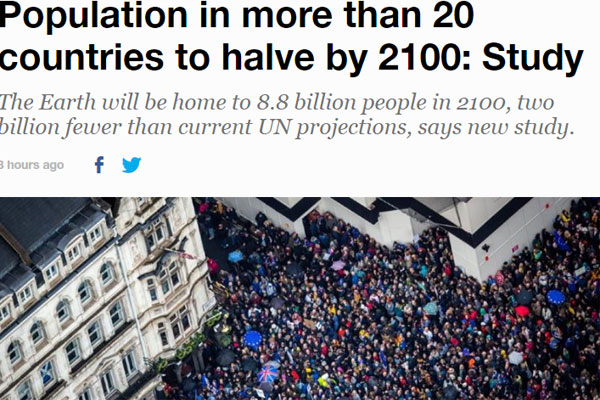 তাতে দেখা যায়, ২১০০ সালে ইতালি, জাপান, পোল্যান্ড, পর্তুগাল, দক্ষিণ কোরিয়া, স্পেন, থাইল্যান্ডসহ ২০টিরও বেশি দেশে জনসংখ্যা অর্ধেক কমে যাবে। চীনের জনসংখ্যাতেও বড় ধরনের পরিবর্তন ঘটবে। বিশ্বের সর্বাধিক জনসংখ্যার দেশটিতে বর্তমান মানুষের সংখ্যা কমে আগামী ৮০ বছর পর ৭৩০ মিলিয়নে দাঁড়াবে।