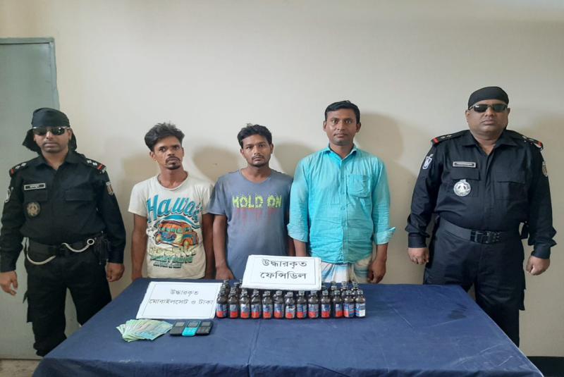 সিরাজগঞ্জ প্রতিনিধি : সিরাজগঞ্জ জেলার রায়গঞ্জ থানাধীন মাদক বিরোধী অভিযানে ৪৭ বোতল ফেন্সিডিলসহ মোঃ আনিসুর রহমান(২৬), মোঃ এমদাদুল হক মিলন(২৬) এবং মোঃ শফিকুল ইসলাম(৩১) নামের তিন মাদক ব্যবসায়ীকে গ্রেফতার করেছে স্পেশাল কোম্পানী, র্যাব-১২ সিরাজগঞ্জ এর একটি আভিযানিক দল। আটককৃত মোঃ আনিছুর রহমান, হলেন দৌলতপুর গ্রামের, রায়গঞ্জ থানার মোঃ ফজলার রহমান,ও মোঃ এমদাদুল হক মিলন হলেন দৌলতপুর গ্রামের, রায়গঞ্জ থানার মৃত- গনি শেখ এবং মোঃ শফিকুল ইসলাম হলেন ঘুড়পা নতুন পাড়া, সলঙ্গা থানার মৃত-নজির উদ্দিন এর ছেলে। এ সময় তাদের নিকট ৪৭ পিস ফেন্সিডিল, ০৩ টি মোবাইল, ০৩ টি সিমকার্ড, ও নগদ ১০,৮০০/- টাকা উদ্ধার করা হয়।