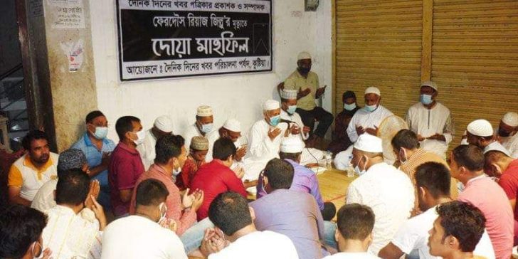নিজস্ব প্রতিবেদক, কুষ্টিয়া : কুষ্টিয়া হতে প্রকাশিত দৈনিক দিনের খবর পত্রিকার সম্পাদক ও প্রকাশক ফেরদৌস রিয়াজ জিল্লু (৩৮) এর অকাল মৃত্যুতে দিনের খবর পরিচালনা পর্ষদের আয়োজনে তাঁর বিদেহী আত্মার মাগফিরাত কামনা করে দোয়া মাহফিল অনুষ্ঠিত হয়েছে।