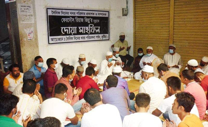নিজস্ব প্রতিবেদক, কুষ্টিয়া : কুষ্টিয়া হতে প্রকাশিত দৈনিক দিনের খবর পত্রিকার সম্পাদক ও প্রকাশক ফেরদৌস রিয়াজ জিল্লু (৩৮) এর অকাল মৃত্যুতে দিনের খবর পরিচালনা পর্ষদের আয়োজনে তাঁর বিদেহী আত্মার মাগফিরাত কামনা করে দোয়া মাহফিল অনুষ্ঠিত হয়েছে।