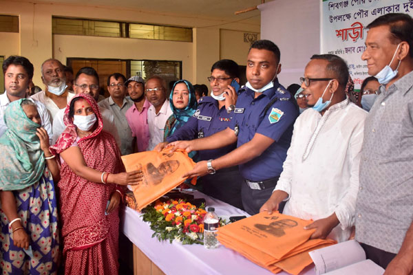 বগুড়া প্রতিনিধি : সনাতন ধর্মাবলম্বীদের সবচেয়ে বড় ধর্মীয় উৎসব শারদীয় দুর্গা পূজা উপলক্ষে বগুড়ার শিবগঞ্জে চার শতাধিক পরিবারের মাঝে শাড়ি-লুঙ্গি, ধুতি, নারিকেল-চিনি বিতরণ করা হয়েছে। এর মধ্যে আড়াইশ নারীকে শাড়ি, বয়োজ্যেষ্ঠ ৫০ জনকে লুঙ্গি, ৫ জন পুরোহিতকে ধুতি এবং সম্মানীয় ১০০ বিশিষ্ঠ নাগরিককে নারিকেল ও চিনি দেওয়া হয়। শিবগঞ্জ পৌরসভার মেয়র তৌহিদুর রহমান মানিকের উদ্যোগে প্রতিবারের মতো এবারও এসব পূজার সামগ্রী বিতরণ করা হয়।