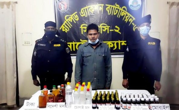 এসময় মানিক হোসেনকে সন্দেহ হলে তার দোকান তল্লাশি করে ২.৬৭৫ লিটার, বিদেশী মদ, ৭ লিটার দেশীয় প্রস্তুতকৃত চোলাই মদ ও মদ তৈরীর উপকরণ ৭৫ বোতলসহ তাকে হাতেনাতে গ্রেফতার করা হয়। প্রাথমিক জিজ্ঞাসাবাদে মানিক জব্দকৃত বিদেশী মদ বিক্রয়ের উদ্দেশ্যে নিজ হেফাজতে রেখেছিল বলে সাক্ষীদের সম্মুখে স্বীকার করে। উপরোক্ত ঘটনায় মাদকদ্রব্য নিয়ন্ত্রণ আইনে মামলা দায়েরের পর তাকে লালপুর থানায় হস্তান্তর করা হয়।