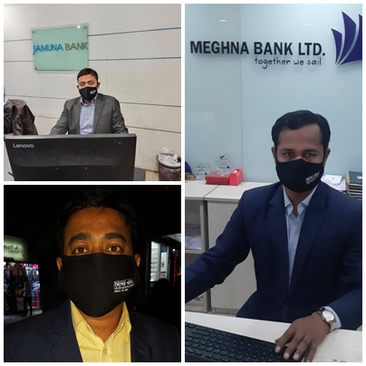মাস্ক বিতরনের সময় গ্রহীতা (যমুনা ব্যাংক কর্মকর্তা) হাফিজুর রহমান হাফিজ ,(মেঘনা ব্যাংক কর্মকর্তা) সৈয়দ মিনহাজুল মনির ,(লংকা বাংলা ব্যাংক কর্মকর্তা) ইমতিয়াজ আহমেদ দিবস বলেন ,দেশের পত্রিকার পক্ষ থেকে মাস্ক বিতরন কর্মসূচীকে আমরা সাধুবাদ জানায় । গনমাধ্যমকর্মী জাতির বিবেক,জাতির দর্পন,সমাজিক আয়না ,দেশের প্রতিচ্ছবী তাদের এই ধরনের উদ্দ্যোগ দেশের মানুষদের অনুপ্রানীত করবে ।