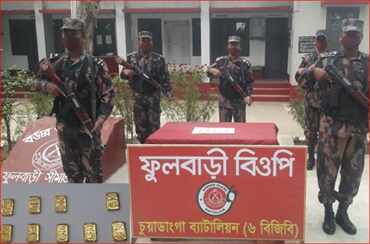 চুয়াডাঙ্গার ৬ বিজিজির অধিনায়ক লে. কর্নেল মোহাম্মদ খালেকুজ্জামান জানান, চুয়াডাঙ্গার ৬ বর্ডার গার্ড বাংলাদেশ এর ফুলবাড়ি বিওপি ক্যাম্পের বিশেষ টহলদল গোপন সূত্রে খবর পেয়ে চাকুলিয়া মাঠে অভিযান চালায়। ওই মাঠ থেকে জব্দ করা হয় ৯০ ভরি ওজনের ৯টি সোনার বার।