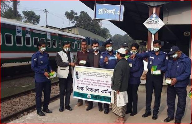 কুষ্টিয়া প্রতিনিধি : কুষ্টিয়ার পোড়াদহ রেলওয়ে জংশন ষ্টেশনে যাত্রী সাধারনের মাঝে ফ্রি মাস্ক বিতরণ করা হয়েছে।