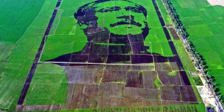 ‘শস্যচিত্রে বঙ্গবন্ধু’ যে ১০০ বিঘা জমিতে করা হয়েছে তাতে প্রায় তিন হাজার মণ ধান মিলবে। সেটা প্রধানমন্ত্রীর ত্রাণ ভাণ্ডারে দেওয়া হবে। ২০১৯ সালে চীনে গড়া হয়েছিল ৭৫ বিঘা জমিতে একটি শস্যচিত্র, যার আয়তন ছিল ৮ লাখ ৫৫ হাজার ৭৮৬ বর্গফুট। আর বগুড়ার শেরপুরের বালিন্দার শস্যচিত্রের আয়তন দাঁড়াচ্ছে ১২ লাখ ৯২ হাজার বর্গফুট। মোট ১২০ বিঘা জমি ইজারা নিয়ে শস্যচিত্রে বঙ্গবন্ধুর প্রতিকৃতি গড়ে তোলা হয়েছে।