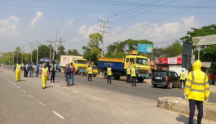ভোর থেকে ঢাকা শহরের বিভিন্ন এলাকা ঘুরে দেখা গেল ‘কঠোর লকডাউন’ কার্যকর করার জন্য পুলিশ বিভিন্ন জায়গায় তৎপর রয়েছে। শহরের বিভিন্ন গুরুত্বপূর্ণ রাস্তায় পুলিশ চেকপোস্ট বসিয়েছে। এসব চেকপোস্টে গাড়ি থামিয়ে যাত্রীদের পরিচয় এবং রাস্তার বের হবার কারণ জিজ্ঞেস করা হচ্ছে। যেসব পেশার মানুষ জরুরি সেবার সাথে সম্পৃক্ত তাদের চেকপোস্ট অতিক্রম করার অনুমতি দিয়ে অন্যদের ফিরিয়ে দেয়া হচ্ছে। বহু রাস্তা বেরিকেড বসিয়ে বন্ধ করে দেয়া হয়েছে। সেসব রাস্তায় জরুরি সেবা সংস্থার কোন যানবাহনও যেতে পারছে না, যেতে হচ্ছে বিকল্প রাস্তায়।