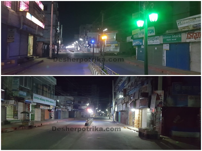 শহরের গুরুত্বপূর্ণ পয়েন্টগুলোতে বাঁশ দিয়ে সড়ক আটকে রেখে পুলিশ কঠোর পাহারা বসিয়েছে। শহর এবং মহাসড়কে ব্যাপক শোডাউন দিচ্ছে পুলিশ। পথচারী এবং যানবাহনগুলোকে কি কারনে বের হয়েছে নিশ্চিত হয়েই ছাড়া হচ্ছে।ব্যবসা প্রতিষ্ঠান ও বিপনি বিতানগুলো বন্ধ রয়েছে।