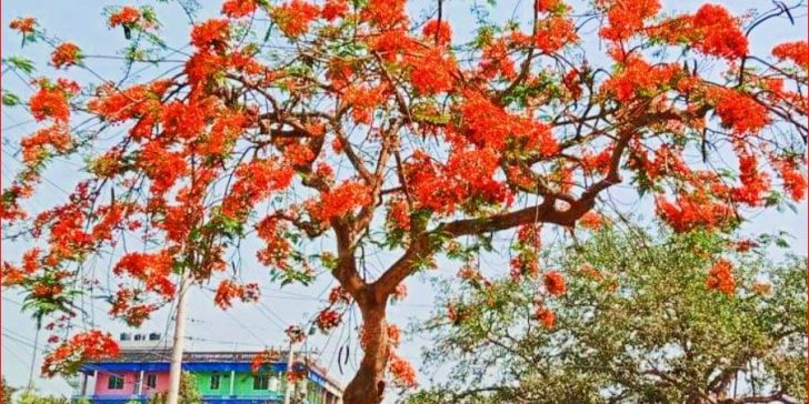 সরেজমিনে দেখা গেছে, এই প্রতিটি গ্রামে কিংবা শহর এলাকার কোথাও না কোথাও দেখা মিলছে কৃষ্ণচূড়ার। এলাকার বেশ কিছু পাড়া-মহল্লায়ও ফুলটি সগর্বে জেগে রয়েছে।