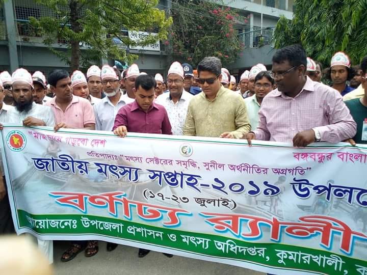 কুষ্টিয়ার কুমারখালীতে জাতীয় মৎস্য সপ্তাহ-২০১৯ উদযাপন উপলক্ষে র্যালী ও আলোচনা এবং সম্মাননা ক্রেস্ট প্রদান করা হয়েছে। গতকাল সকাল ১০ টায় উপজেলা প্রশাসন ও মৎস্য অধিদপ্তর কুমারখালী আয়োজনে উপজেলা চত্বর থেকে র্যালী বের করা হয়।