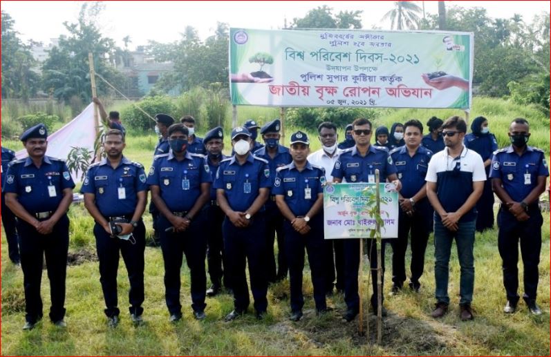 পরিবেশের অপরিসীম গুরুত্বের কথা তুলে ধরতে প্রতি বছর ৫ জুন পালিত হয় বিশ্ব পরিবেশ দিবস। প্রকৃতিকে সম্মান জানাতে এই নির্দিষ্ট দিনকেই বেছে নিয়েছে রাষ্ট্রপুঞ্জ। বিশ্বে সবুজায়ন ও প্রকৃতির গুরুত্ব বোঝাতেই এই দিনটিকে পালন করা হয়। এই বিষয়টিকে সামনে রেখে জেলা পুলিশ, কুষ্টিয়ার আয়োজনে অদ্য ৫ জুন ২০২১ তারিখ জনাব মোঃ খাইরুল আলম, পুলিশ সুপার, কুষ্টিয়া মহোদয়ের নেতৃত্বে কুষ্টিয়া জেলা পুলিশ লাইন্সের ফায়ারিং বাটের সম্মুখে দিনব্যাপি পালিত হয় বিশ্ব পরিবেশ দিবস এবং জাতীয় বৃক্ষরোপণ অভিযান-২০২১।