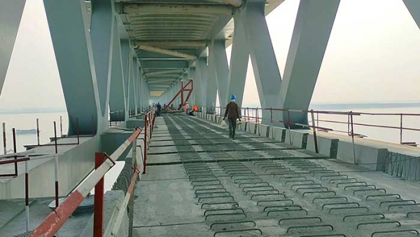 ৬ দশমিক ১৫ কিলোমিটার পদ্মা সেতুর নীচ তলায় ২ হাজার ৯৫৯টি রেলওয়ে স্লাবের মধ্যে সব’কটি স্লাব বসানোর কাজ সম্পন্ন হয়েছে। এতে সময় লেগেছে ৩৬ মান ২৬ দিন। এখন পদ্মা সেতুর নীচ তলা দিয়ে পায়ে হেঁটে প্রমত্তা পদ্মার এপার থেকে ওপারে যাওয়ার সুযোগ তৈরি হলো। সেতুর উভয় প্রান্তে ভায়াডাক্টে রেল স্লিপার ও রেল লাইন বসানোর কাজ শুরু করা হয়েছে।