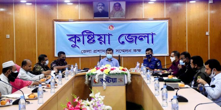 কুষ্টিয়া জেলা প্রশাসকের কার্যালয়ে কোভিড ১৯ রোধে পুলিশ, সেনাবাহিনী, বিজিবি, র্যাব ও আনসার ডিপ্লয়মেন্ট বিষয়ে সমন্বয় সভা অনুষ্ঠিত