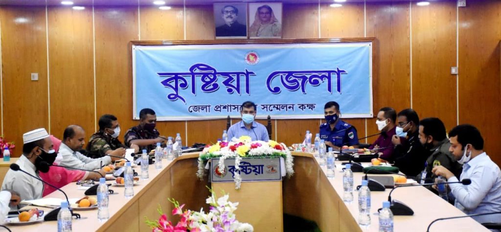 কুষ্টিয়া জেলা প্রশাসকের কার্যালয়ে কোভিড ১৯ রোধে পুলিশ, সেনাবাহিনী, বিজিবি, র্যাব ও আনসার ডিপ্লয়মেন্ট বিষয়ে সমন্বয় সভা অনুষ্ঠিত