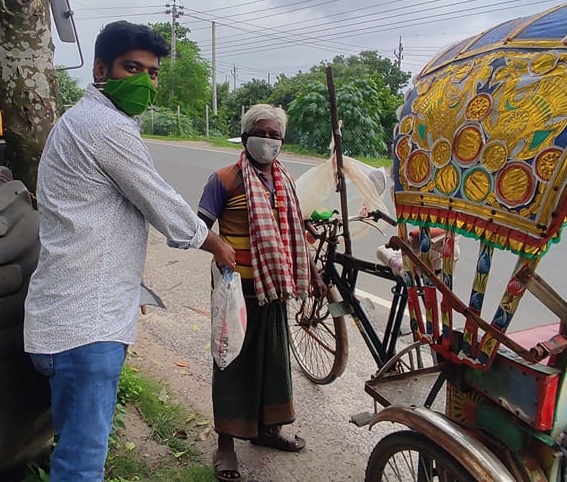 কুষ্টিয়া প্রতিনিধি : জনবান্ধব,দেশ বান্ধব রাকিব নেহাল জয় এর সহযোগীতায় আজ ভোর ৬টার সময় কুষ্টিয়া আড়ুয়াপাড়া,কালিশংকরপুর,হরিশংকরপুর,উত্তর মিলপাড়া,কুষ্টিয়া মেডিকেল কলেজের উত্তর পাশে সহ কুষ্টিয়া পৌরসভা আওতাধীন এলাকায় ৪০জন কর্মহীন রিস্কাচালক,ভ্যানচালক নিম্নআয়ের মানুষের হাতে খাদ্য সামগ্রী তুলে দেয়া হয়। কোভিড-১৯ এ বাংলাদেশের বর্তমান অবস্থা কেমন তা সকলের জানা দেশকে ভালোবেসে তিনি সহযেগীতার হাত বাড়িয়ে দিয়েছেন।