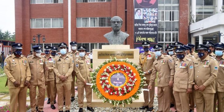 বঙ্গবন্ধুর প্রতিকৃতিতে শ্রদ্ধা নিবেদনের পর পুলিশ সুপার মোঃ খাইরুল আলম এই মহান নেতার প্রতি সম্মান প্রদর্শন করে সেখানে কিছুক্ষণ নীরবে দাঁড়িয়ে থাকেন।