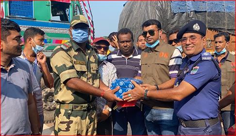 সাতক্ষীরা পুলিশ সুপার মোহাম্মদ মুস্তাফিজুর রহমানের পক্ষে জেলা গোয়েন্দা পুলিশের ওসি মোঃ ইয়াছিন আলম চৌধুরী ভারতের ঘোজাডাঙ্গা বন্দরের সরকারি কর্মকর্তা কর্মচারীরাদের মাঝে মিষ্টি বিতরণ ও শারদীয় শুভেচ্ছা বিনিময় করেন।