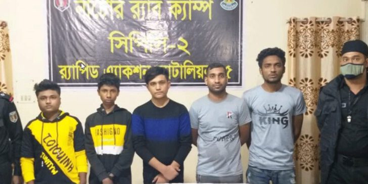 নাটোরের গ্রেফতারকৃতরা হলেন—উপজেলার বালিতিতা ইসলামপুর গ্রামে মো. রেজাউল করিমের ছেলে মো. আলমগীর হোসেন (২০), মহারাজপুর গ্রামের মো. সামান উদ্দিনের ছেলে মো. তারিক হোসেন (১৬), মো. মোখলেছুর রহমানের ছেলে মো. রাজু হোসেন (১৬), মো. সাজদার রহমানের ছেলে মো. আসিফ হোসেন (১৫) ও কুষ্টিয়ার ভেড়ামারার সাতবাড়িয়া মলপাড়া গ্রামের মো. জাবের আলী মন্ডলের ছেলে মো. হারুন অর রশিদ (২৬)।