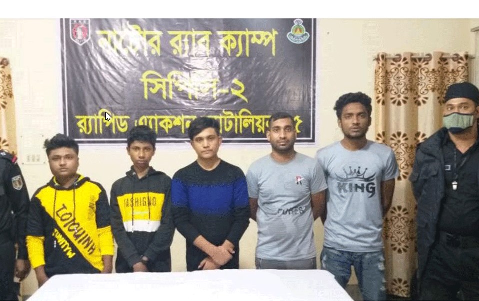 নাটোরের গ্রেফতারকৃতরা হলেন—উপজেলার বালিতিতা ইসলামপুর গ্রামে মো. রেজাউল করিমের ছেলে মো. আলমগীর হোসেন (২০), মহারাজপুর গ্রামের মো. সামান উদ্দিনের ছেলে মো. তারিক হোসেন (১৬), মো. মোখলেছুর রহমানের ছেলে মো. রাজু হোসেন (১৬), মো. সাজদার রহমানের ছেলে মো. আসিফ হোসেন (১৫) ও কুষ্টিয়ার ভেড়ামারার সাতবাড়িয়া মলপাড়া গ্রামের মো. জাবের আলী মন্ডলের ছেলে মো. হারুন অর রশিদ (২৬)।