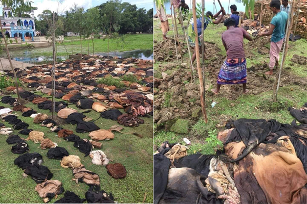 চামড়া সংগ্রহ করে তার উপযুক্ত মূল্য না পাওয়ায় সৈয়দপুর ও দিনাজপুরে ব্যবসায়ী ও বিভিন্ন মাদ্রাসা কর্তৃপক্ষ তা গর্ত করে মাটিতে পুঁতে ফেলেন। অন্যদিকে সিলেটের মৌসুমী চামড়া ব্যবসায়ীরা জানান, বিক্রি তো দূরের কথা বিনামূল্যেও নেয়ার কেউ নেই। তাই সিলেটের আম্বরখানা এলাকায় রাস্তার ধারে চামড়ার স্তূপ করে রেখেছেন তারা। সিলেটে ঈদের দিন চামড়াগুলো সংগ্রহ করেছিল সিলেট দারুস সালাম মাদ্রাসা কর্তৃপক্ষ। কিন্তু দাম না পেয়ে রাতেই ফেলে দিতে বাধ্য হয় তারা।অপরদিকে চামড়ার মূল্যের একই পরিস্থিতি চট্টগ্রামেও। বুলডোজার দিয়ে শত শত চামড়া অপসারণ করা হয় সড়কের পাশ থেকে। অনেক মৌসুমী ব্যবসায়ী দাম না পেয়ে রাগে-ক্ষোভে এসব চামড়া নষ্ট করে রাস্তার ওপর ফেলে যান।