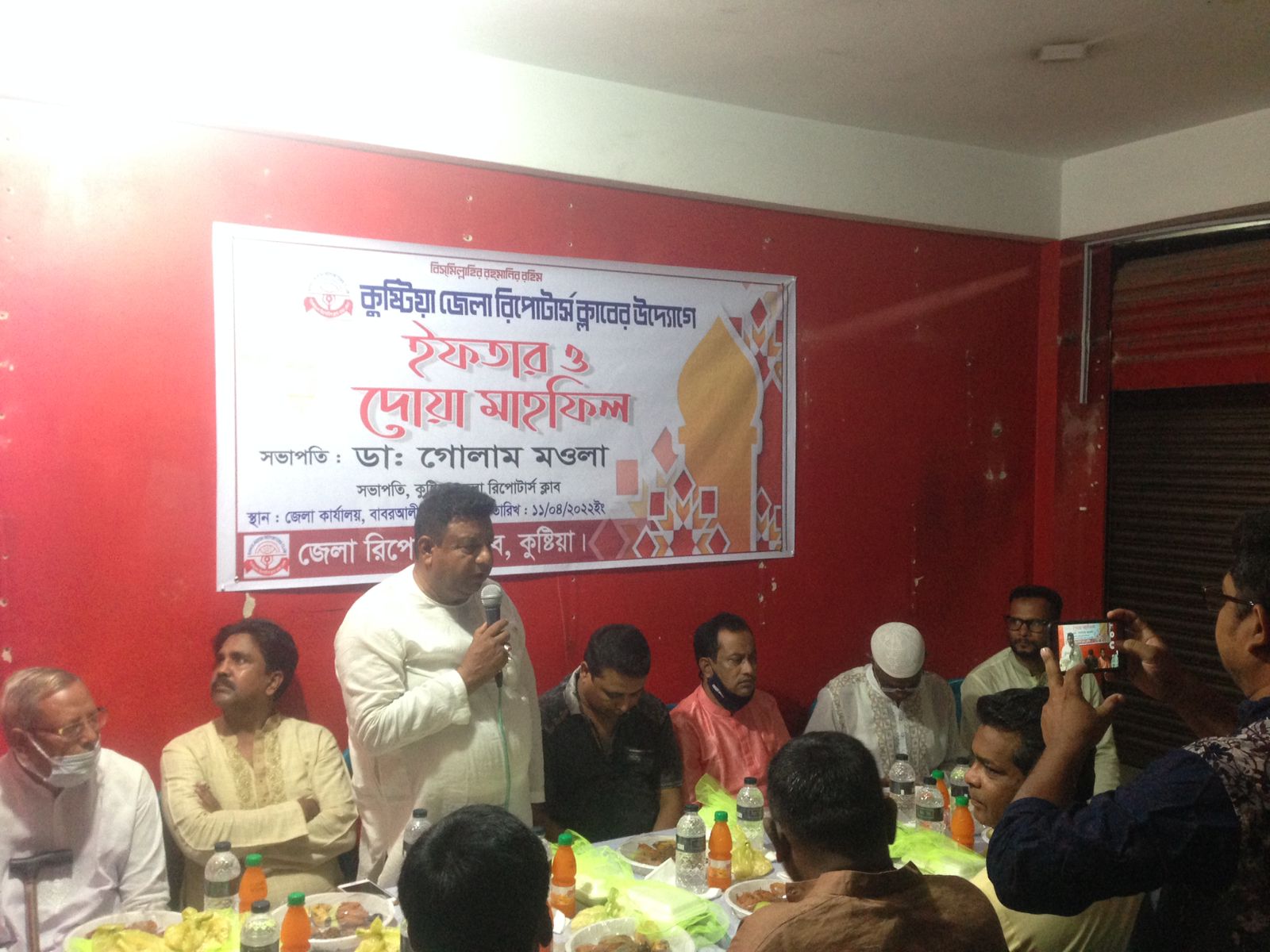 ১১ই এপ্রিল২০২০ইং ৯ই রমজান রোজ সোমবার বাদ আসর কুষ্টিয়া জেলা রিপোর্টার্স ক্লাবের মিলনায়তনে ইফতার ও দোয়া মাহফিলের অনুষ্ঠান আয়োজন করা হয়।
