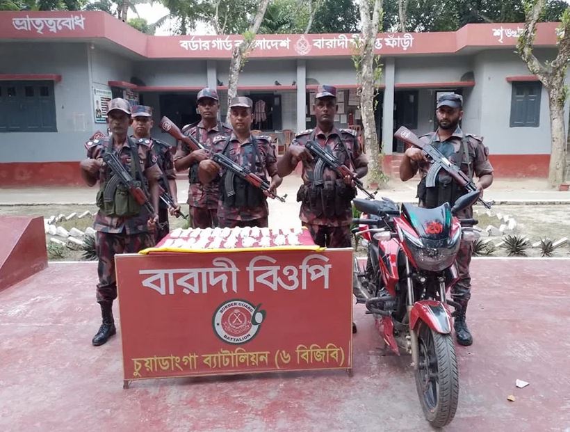 চুয়াডাঙ্গা ৬ বিজিবি ব্যাটালিয়নের অধিনায়ক লেফটেন্যান্ট কর্নেল শাহ্ মো. ইশতিয়াক জানান, শনিবার বিকালে গোপন সংবাদের ভিত্তিতে সীমান্তের বারাদি ক্যাম্পের ইনচার্জ নায়েক সুবেদার আব্দুল জব্বার সঙ্গীয় ফোর্স নিয়ে কামারপাড়া তিন রাস্তার মোড়ে অবস্থান নেয়। এ সময় সীমান্ত দিক থেকে আসা মোটরসাইকেলযোগে এক পাচারকারীকে দেখতে পেয়ে চ্যালেঞ্জ করলে সন্দেহভাজন পাচারকারী মোটরসাইকেল ফেলে ভারত সীমান্তের দিকে পালিয়ে যায়।