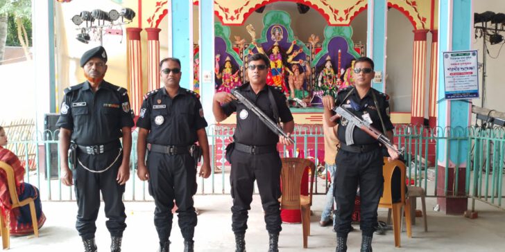 সনাতন ধর্মালম্বীদের সবচেয়ে বড় ধর্মীয় উৎসব শারদীয় দূর্গাপূজা যেন নির্বিঘ্নে উদ্যাপন করতে পারে সে জন্য অধিনায়ক র্যাব-১২ জনাব মোঃ মারুফ হোসেন, পিপিএম(সেবা),অতিরিক্ত ডিআইজি স্যারের নির্দেশনায় র্যাব-১২ এর দায়িত্বপূর্ণ এলাকা সিরাজগঞ্জ,বগুড়া,কুষ্টিয়া,পাবনা,মেহেরপুর এবং টাঙ্গাইলের বিভিন্ন পূজামন্ডপের নিরাপত্তা, আইন শৃঙ্খলা পরিস্থিতি ও অপ্রীতিকর ঘটনা প্রতিরোধের জন্য নির্দেশনা প্রদান করেন।