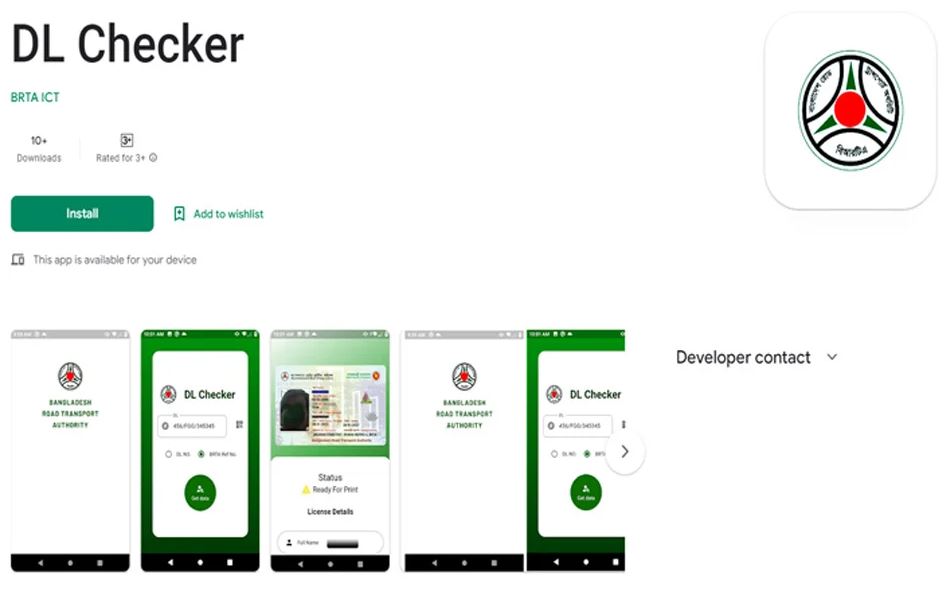 বাংলাদেশ সড়ক পরিবহন কর্তৃপক্ষ (বিআরটিএ) ড্রাইভিং লাইসেন্সের আবেদনকারীদের জন্য ‘ডিএল চেকার’ নামে নতুন একটি অ্যাপ গুগল প্লে স্টোরে প্রকাশ করেছে। এই অ্যাপের মাধ্যমে ড্রাইভিং লাইসেন্সের অগ্রগতি জানা যাবে।