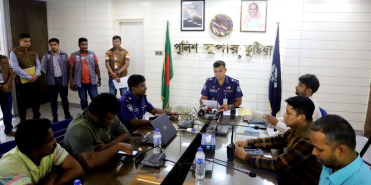 শনিবার (২২ অক্টোবর, ২০২২) দুপুর ১২ টায় পুলিশ সুপার কুষ্টিয়া মোঃ খাইরুল আলম মিডিয়া ব্রিফিংয়ে বলেন, মানব পাচার সংক্রান্তে বাদী হয়ে মোঃ আব্দুস সামাদ (৪৮), পিতা – মৃত সামছুদ্দিন প্রমানিক, সাং – সাদীপুর, থানা- দৌলতপুর জেলা কুষ্টিয়া, আসামি (১)রেজাউল করিম হিমেল, পিতা – হাবিল সর্দার, গ্রাম- দৌলতখালী, সরদারপাড়া, থানা দৌলতপুর জেলা কুষ্টিয়া (২) মোঃ সোভন হোসেন (৪০), পিতা- মোঃ ইদ্রিস আলী, গ্রাম- চাঁদপুর থানা- শৈলকূপা, জেলা- ঝিনাইদহ (বর্তমানে কম্বোডিয়া প্রবাসী) (৩) মোঃ ইদ্রিস মন্ডল (৪৭), পিতা- চৌধর মন্ডল, গ্রাম- চাঁদপুর থানা, শৈলকূপা, জেলা- ঝিনাইদহ সহ অজ্ঞাতনামা ৪/৫ জন এর বিরুদ্ধে আসামি করে থানায় এজাহার দিলে দৌলতপুর থানার মামলা নম্বর ৩১ তারিখ ১৯/১০ /২০২২, ধারা ২০১২ সালের মানব পাচার প্রতিরোধ ও দমন আইনের ৭/৮/৯/১০ রুজু করা হয়। মানব পাচারের ঘটনা সংক্রান্তে পুলিশ সুপার কুষ্টিয়ার প্রত্যক্ষ দিকনির্দেশনা ও তত্ত্বাবধান মোতাবেক কুষ্টিয়া জেলার সাইবার ক্রাইম ইনভেস্টিগেশন ইউনিট (CCIU) ইনচার্জ ইন্সপেক্টর মোঃ আনিসুল ইসলাম এর নের্তৃত্বে একটি চৌকস টিম তথ্যপ্রযুক্তির সহায়তায় আসামিদের অবস্থান নির্ণয়-পূর্বক দেশ ও প্রবাসের সংঘবদ্ধ মানব মানব পাচারের সাথে সক্রিয়ভাবে জড়িত চক্রের রহস্য উদঘাটন ও ২জন আসামি আটক করেন। আটকৃত আসামিরা হলেন (১)মোঃ রেজাউল করিম হিমেল (এজাহার নামীয়) এবং অজ্ঞাতনামা আসামিদের মধ্য হতে (২)মোহাম্মদ পারভেজ রানা (২৭), পিতা মোঃ রফিকুল ইসলাম, সাং- মাদিয়া, ত্রিমোহনী পাড়া, থানা- দৌলতপুর কুষ্টিয়া দ্বয়কে Earth international Ltd, house no 04, Road no -1/A, Block – j, Baridhara, Vatara, Dhaka হতে আটক করা হয়।