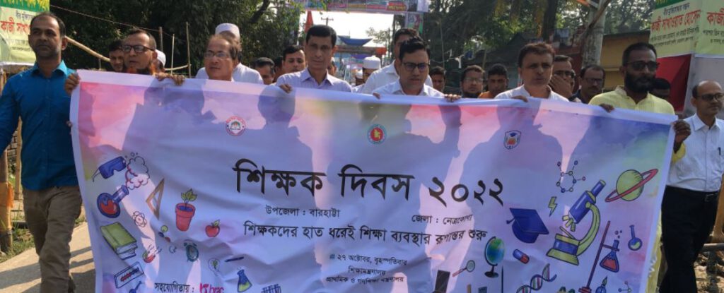 শিক্ষকদের হাত ধরেই শিক্ষাব্যবস্থার রুপান্তর শুরু’- এই প্রতিপাদ্যকে সামনে রেখে সারা দেশের ন্যায় নেত্রকোনার বারহাট্টায় জাতীয় শিক্ষক দিবস-২০২২ উদযাপন করা হয়েছে।