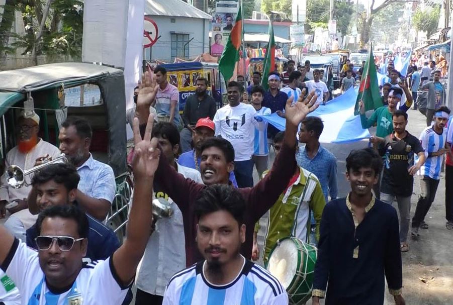 এসময় তরুণ, বৃদ্ধ ও শিশুসহ তিন শতাধিক ফুটবল ভক্তরা প্রিয় দলের জার্সি গায়ে ও হাতে পতাকা নিয়ে মিছিলে অংশ নেয়। মিছিলে বাদ্যের তালে তালে সমর্থকরা মেতে উঠে আনন্দ উচ্ছাসে। পতাকা মিছিলের উদ্যোক্তা মাসুদুর রহমান জানান, ৫ ফুট প্রস্থ ও এক হাজার ৬০ ফুট দীর্ঘ পতাকাটি তৈরিতে সময় লেগেছে তিন দিন, খরচ হয়েছে ত্রিশ হাজার টাকা। সকল ভক্তদের প্রত্যাশা মেসির নেতৃত্বে এবারের বিশ্বকাপ শিরোপা আর্জেন্টিনার ঘরেই উঠবে প্রত্যাশা তাদের।