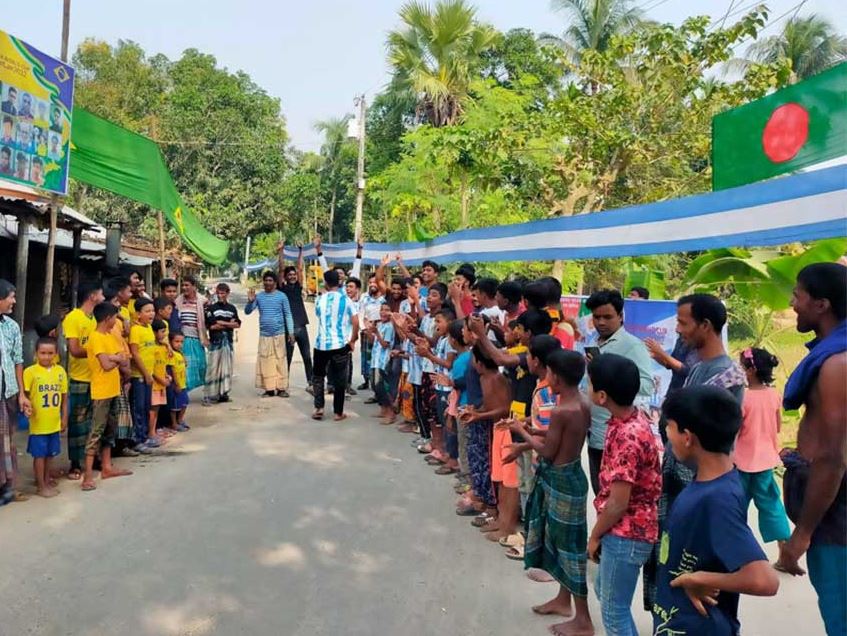 স্থানীয় চা বিক্রেতা আলাউদ্দিন বলেন, ‘একমাস আগে থেকেই আর্জেন্টিনা-ব্রাজিল সমর্থকদের মধ্যে কে হারবে আর কে জিতবে এ নিয়ে চলছে চরম তর্ক-বিতর্ক। এখন পতাকা টানানোর প্রতিযোগিতা চলছে। তবে তর্ক-বিতর্ক হলেও কোনো মারামারি ঝামেলা হয় না।’