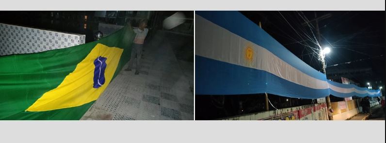 এদিকে ব্রাজিলের চেয়ে বড় ৪২০ ফুট লম্বা পতাকা টাঙিয়ে আর্জেন্টিনার সমর্থক মিঠু, রাফি, সুলতান বলেন, ‘আমরা আর্জেন্টিনার প্রতি সমর্থন জানিয়ে পৌর শহরের অডিটোরিয়ামের চারপাশ ঘিরে পতাকা টাঙাই। এসময় শহরের লোকজন ভিড় করে দুই দলের সর্মথক আনন্দ উল্লাস করতে দেখা যায়। আমাদের দেখাদেখি ব্রাজিলের সমর্থকরাও পতাকা টাঙিয়েছেন। ’