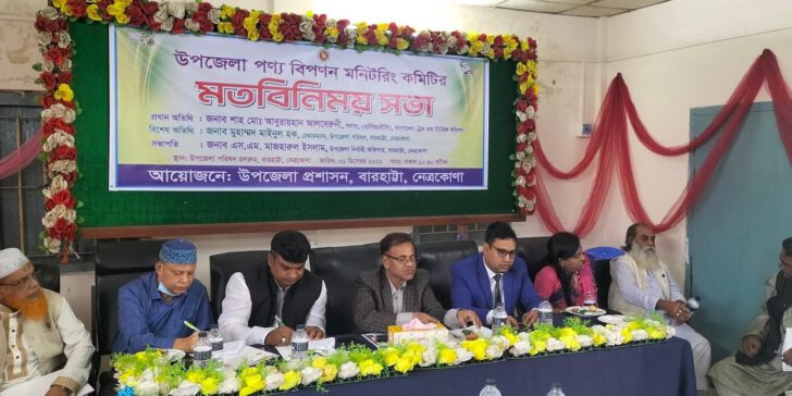 নেত্রকোনার বারহাট্টায় উপজেলা পণ্য বিপণন মনিটরিং কমিটির মত বিনিময় সভা অনুষ্ঠিত হয়েছে।