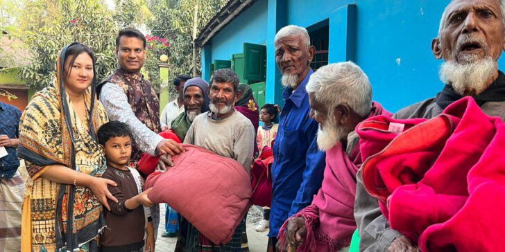 শুক্রবার বিকাল ৪:০০ ঘটিকায় কুষ্টিয়ার জেলার মিরপুর উপজেলার নওদা আজমপুর গ্রামে গ্লোবাল ইসলামী ব্যাংক লিঃ ও এক্সিম ব্যাংক লিঃ এর সৌজন্যে প্রায় শতাধিক গরিব অসহায় ও ছিন্নমূল মানুষের মাঝে কম্বল বিতরণ করেন