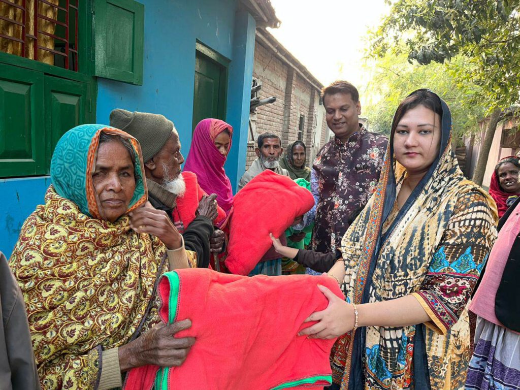শুক্রবার বিকাল ৪:০০ ঘটিকায় কুষ্টিয়ার জেলার মিরপুর উপজেলার নওদা আজমপুর গ্রামে গ্লোবাল ইসলামী ব্যাংক লিঃ ও এক্সিম ব্যাংক লিঃ এর সৌজন্যে প্রায় শতাধিক গরিব অসহায় ও ছিন্নমূল মানুষের মাঝে কম্বল বিতরণ করেন