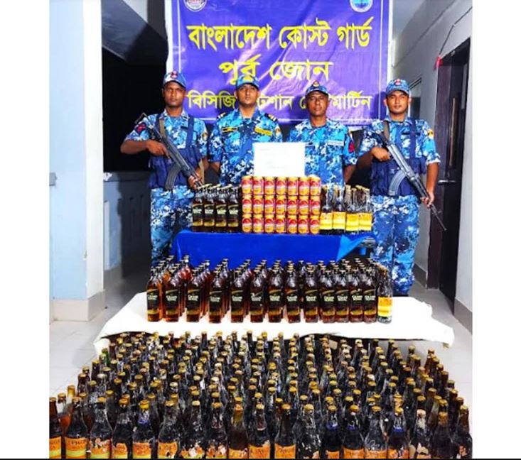 টেকনাফে কোস্টগার্ডের অভিযানে বিপুল পরিমাণ মদ-বিয়ার জব্দ