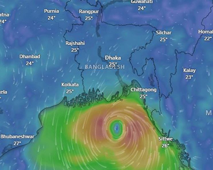 ঘূর্ণিঝড় কেন্দ্রের ৫৪ কিলোমিটারের মধ্যে বাতাসের একটানা সর্বোচ্চ গতিবেগ ঘণ্টায় ৬২ কিলোমিটার, যা দমকা অথবা ঝোড়ো হাওয়া আকারে ৮৮ কিলোমিটার পর্যন্ত বাড়ছে। ঘূর্ণিঝড় কেন্দ্রের নিকটবর্তী এলাকায় সাগর খুবই উত্তাল। চট্টগ্রাম ও কক্সবাজার সমুদ্রবন্দরকে ৭ (সাত) নম্বর বিপদ সংকেত দেখিয়ে যেতে বলা হয়েছে। মোংলা ও পায়রা সমুদ্রবন্দরকে ৫ (পাঁচ) নম্বর বিপদ সংকেত দেখিয়ে যেতে বলা হয়েছে। উপকূলীয় জেলা চট্টগ্রাম, কক্সবাজার, ফেনী, নোয়াখালী, লক্ষ্মীপুর এবং তাদের অদূরবর্তী দ্বীপ ও চরগুলো ৭ (সাত) নম্বর বিপদ সংকেতের আওতায় থাকবে।
